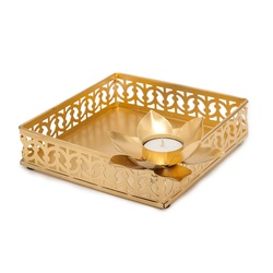 Luxury Tray With Flower Base T Light Holder on Edge for Diwali and Easter Decor With Sizes 8 X 8 X 3 Inch